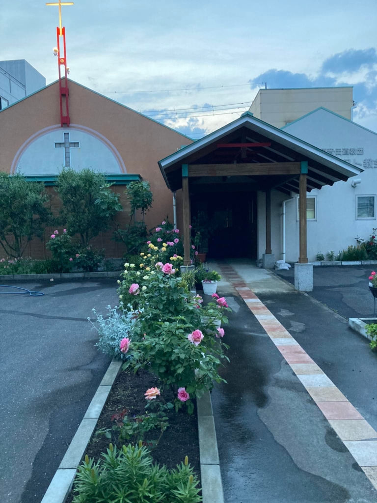 教会員が明日の礼拝に備え講壇の花を用意してくれました。清掃も済んで皆様を迎える準備が出来ました。 ※ボトルブラシはこの時期の花です。