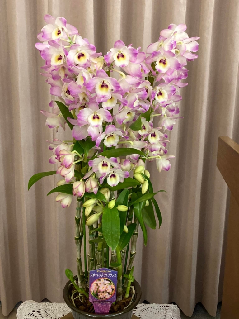 今度の記念会に備え講壇の花を入れ替える。 デンドロビュームです。 蘭はやっぱり華やかです。 -