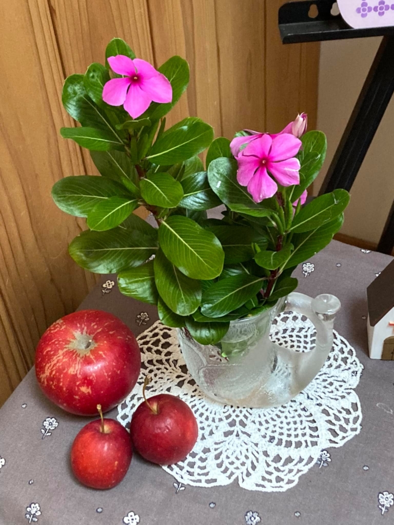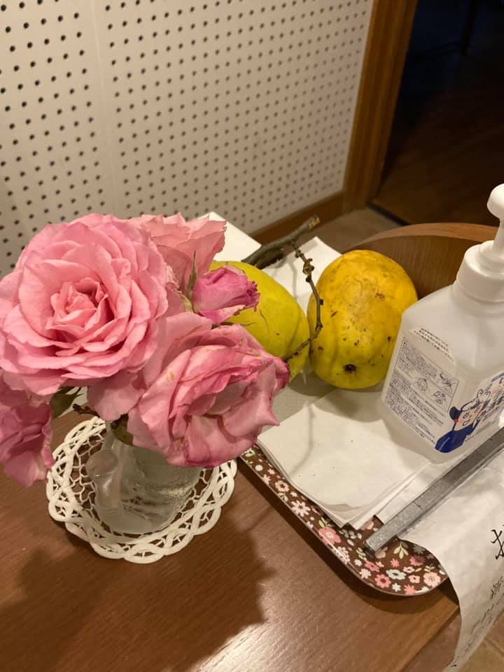 受付にバラとカリン。 まだ飾っています。 -