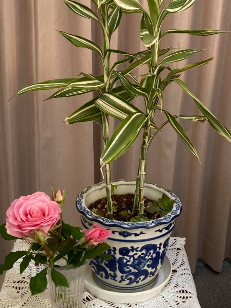 受付にバラとカリン