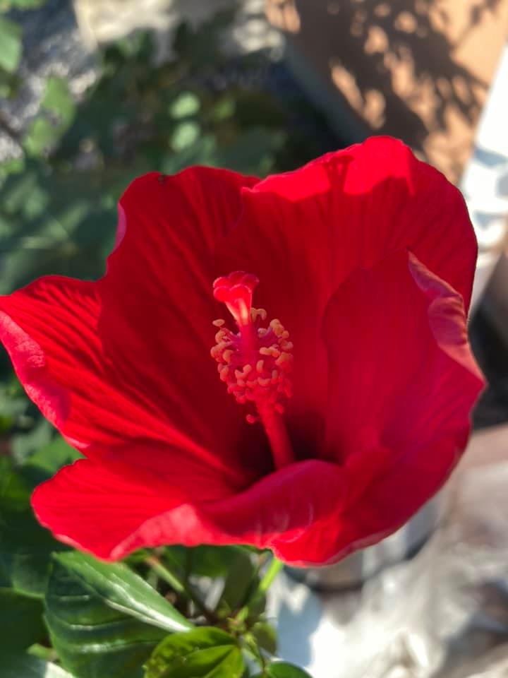 外出先から帰るとハイビスカスは満開でした。花も命を受けてしっかり生きています。 -
