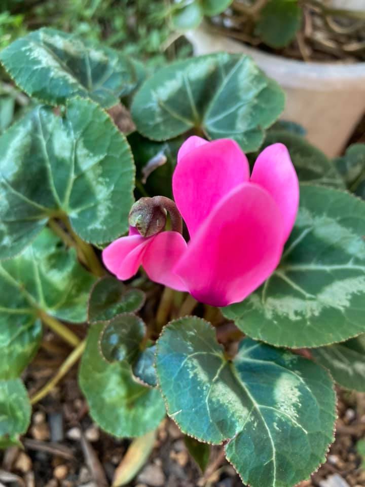 去年のシクラメンを日陰に置いていたが、 なんと花が咲いていた。 二年目に花が咲いたのは今回が初めて。 小さな喜びだ! -