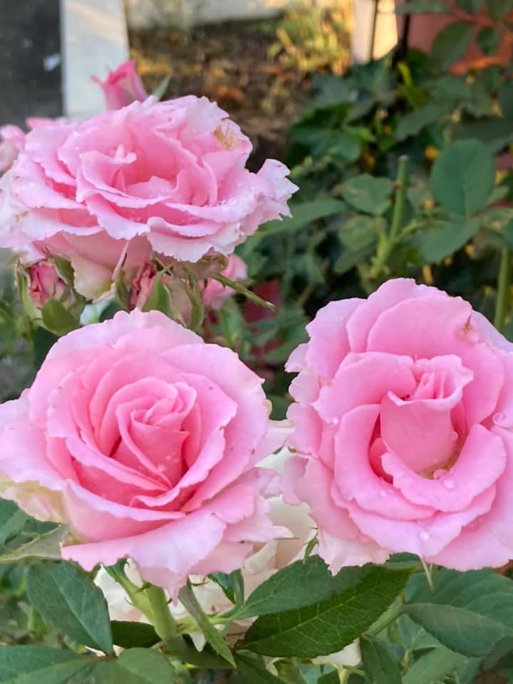 3色のバラが元気です。