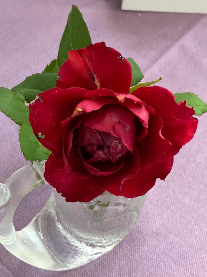 残った赤いバラは切り取り、部屋で楽しみます。秋に新しいのが沢山咲きそうです。 -