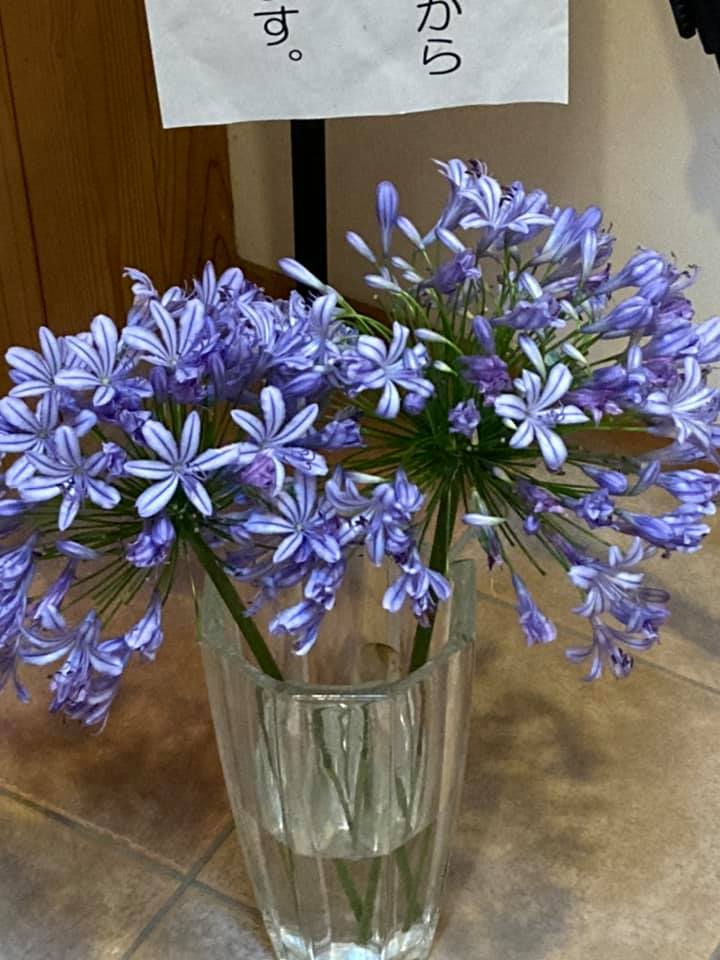 アガパンサスも残り少なくなりました。 雨に打たれたものは、切り取って玄関に飾り来会者をお迎えします。 -