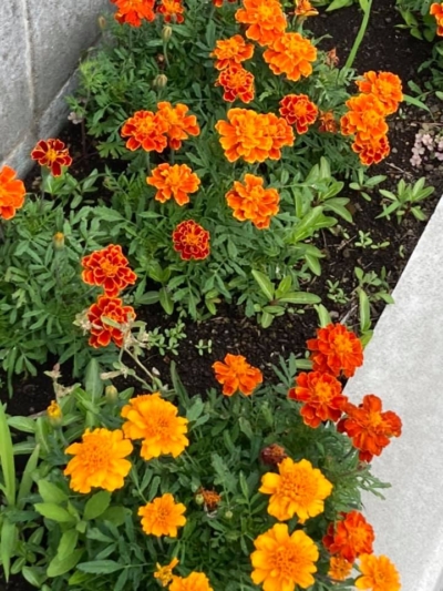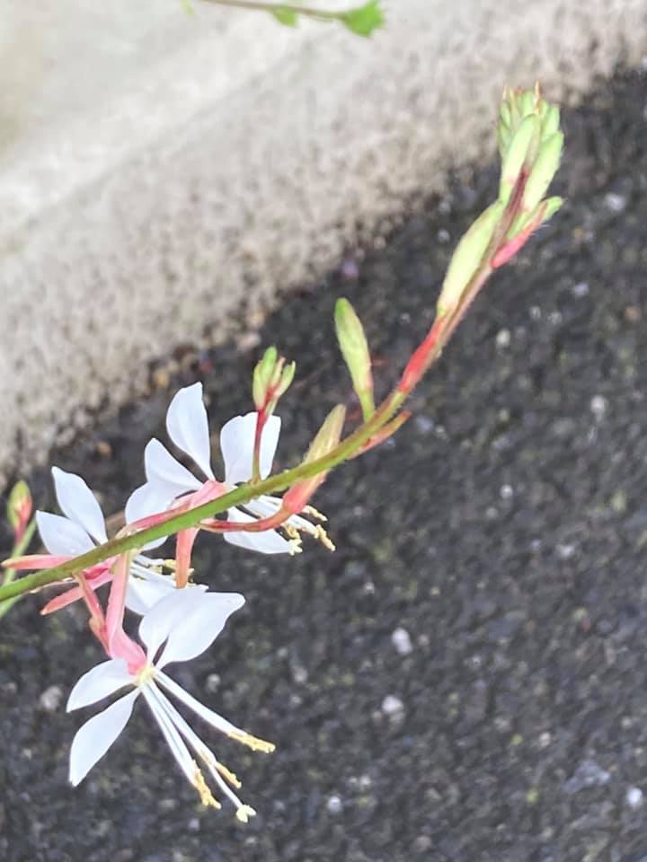 この花の名前何と言うのでしょうか? アプリないのでわかりません。 どなたか教えて下さいますか。 回答ありました。→ ガウラです😊 ハクチョウソウ(白蝶草) ※マリーゴールドは分かります。 -