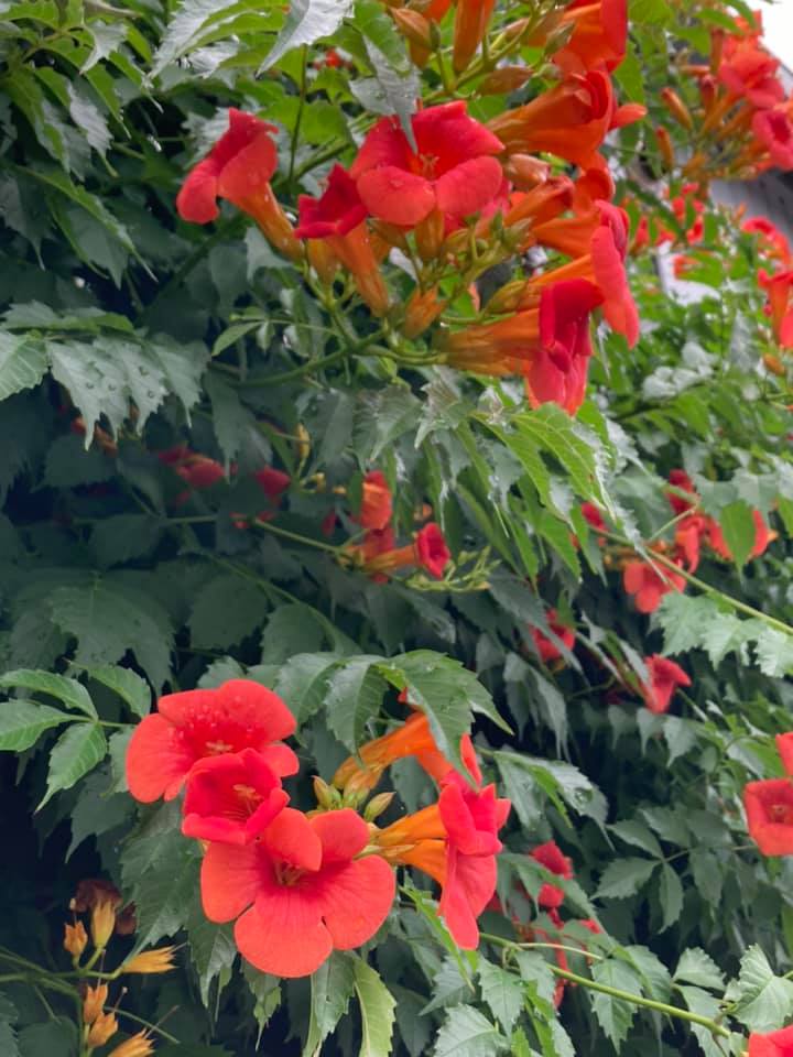 出先で見つけました。 でも名前は思い出せません。 ※ノウゼンカズラと言う名前だそうです。 -