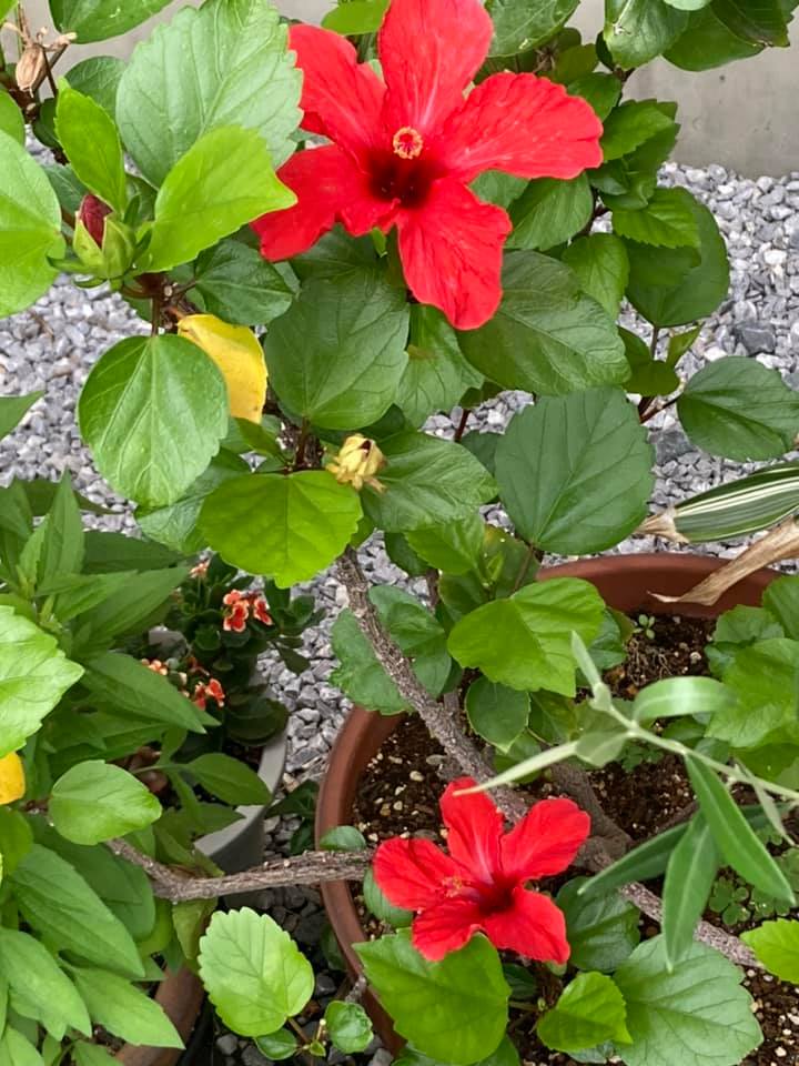 暑さに誘われて、我が家のハイビスカスが咲き出した。勢いがついたのかなぁ。 -