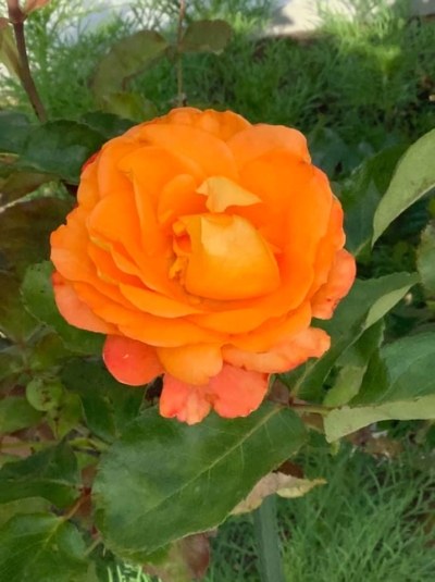 残り一本のバラがやっと一つ花を咲かせました。 いい色なので記録に残しました。ありがとう。心が晴れ晴れします。 -