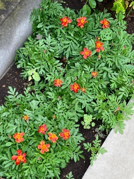 教会庭紹介 早くもマリーゴールドが、 沢山の花を見せてくれています。 秋まで楽しめます。 害虫避けにも、良いらしい。