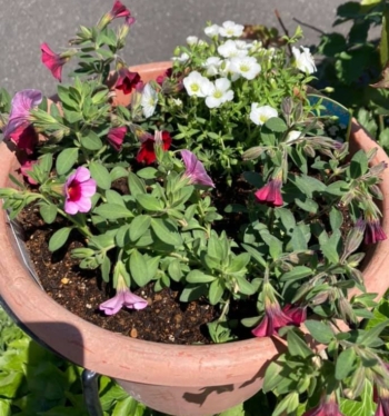 寄せ植えのプレゼント。感謝!なでしこ科の多年草だそうです。これから元気になると思います。 -