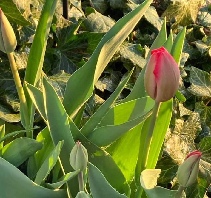 我が本庄教会の庭にあるチュウリップも咲き出す。恵みの雨のおかげで!