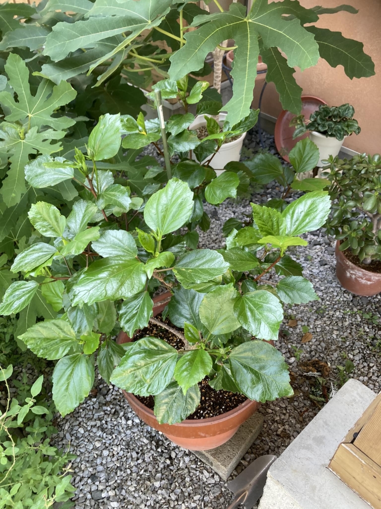 植え替えて貰ったハイビスカスがこんなに生き生きとしてきた。 -