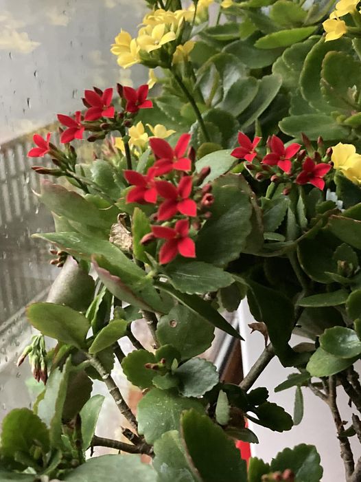 赤のカランコエも咲き始めました。 楽しみ倍増です。 -