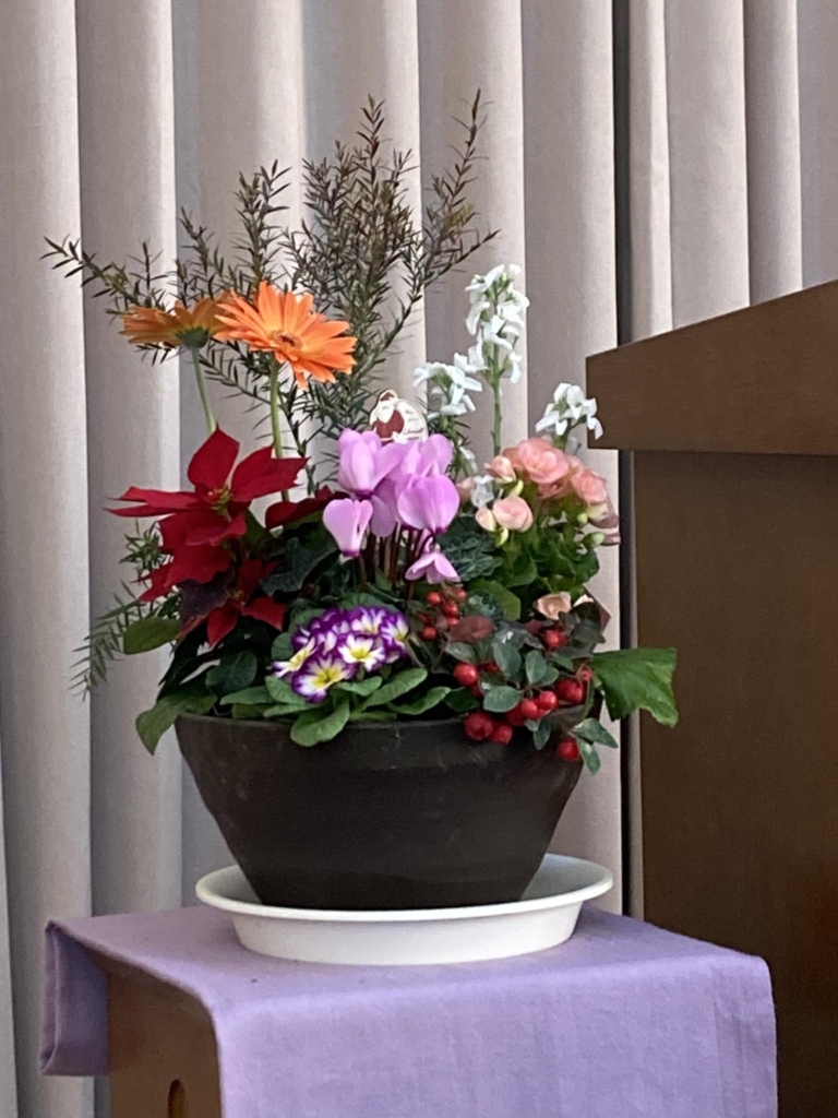 松井田キリスト集会講壇の花が綺麗です。 -